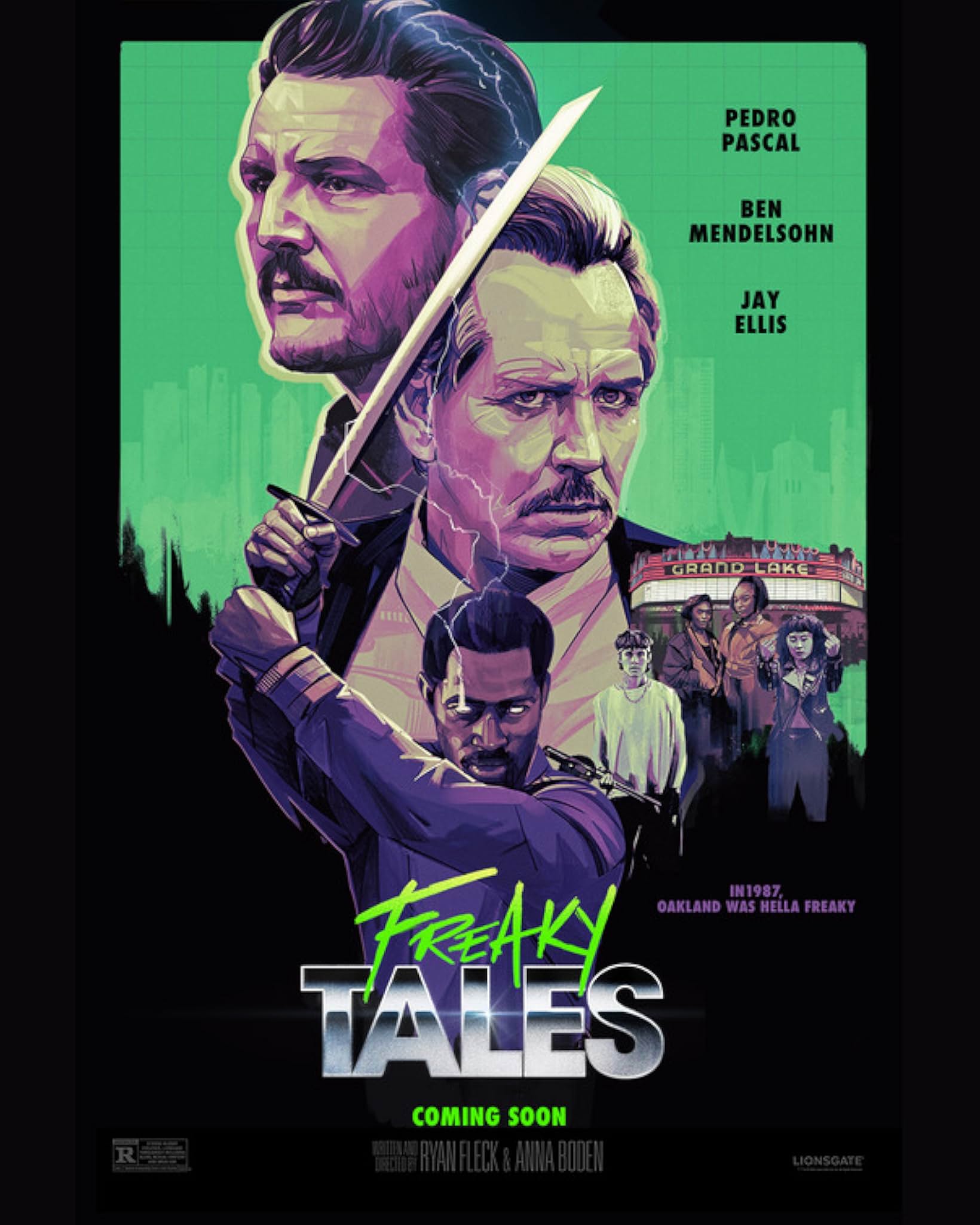 Around May 10, 1987, in Oakland, California, or The Bay, a green glow and lightning add fuel to the fire of resistance brewing among a plethora of underdogs fighting against forces of evil. “Freaky Tales” (2024) interweaves four stories to illustrate the uprising against Nazis, corruption, misogyny, wonton covetousness and killjoys. It is also a love letter to “the Town”: its music, sports, sites (Giant Burger, MacArthur Boulevard) and movie palace (Grand Lake Theatre). While it is uneven and messy, this film could be the next beloved cult film classic and ultimately ties all the loose threads in one bright green bow.